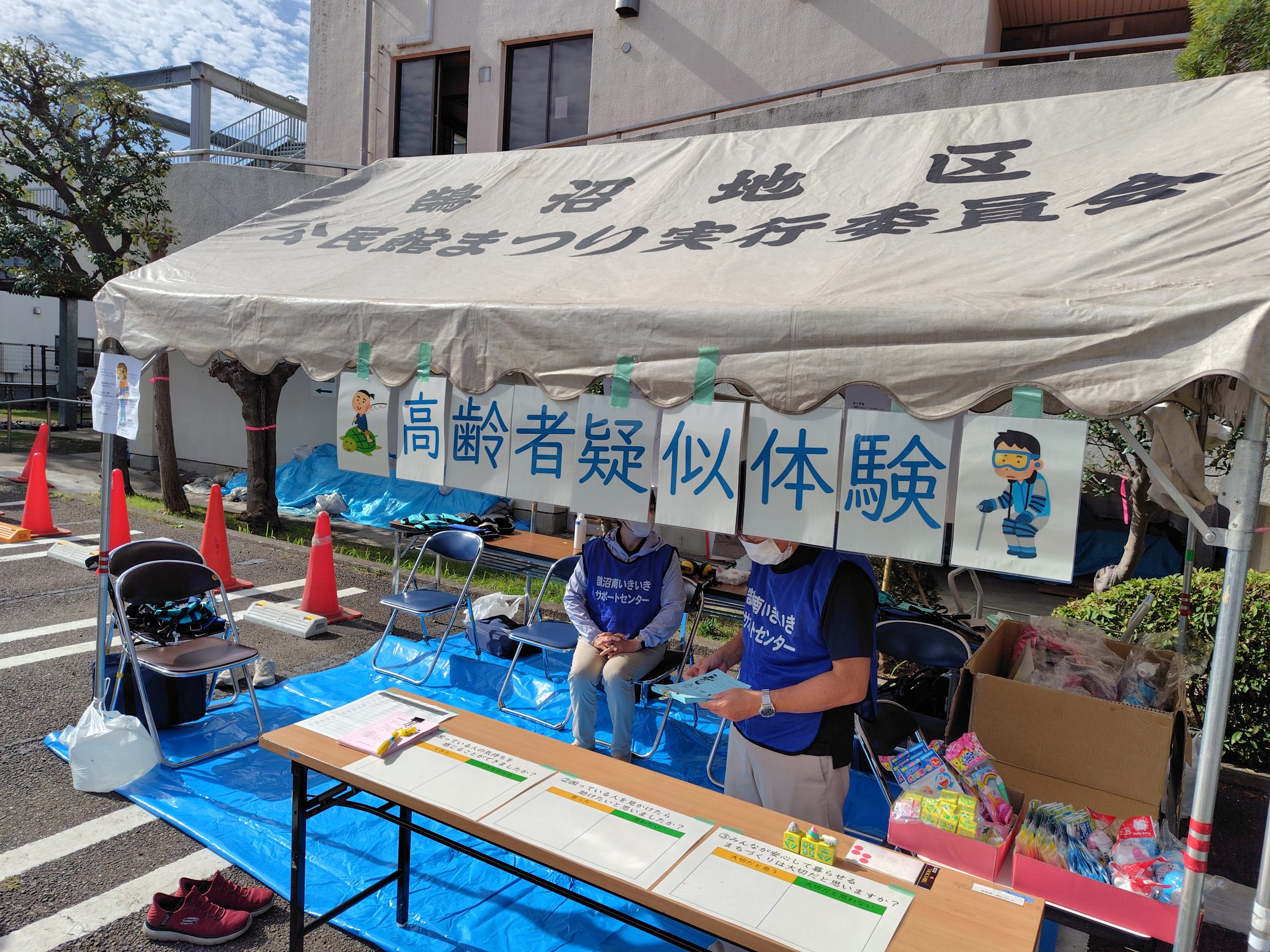 活動紹介の展示と郷土づくり推進会議主催の高齢者疑似体験ブースで参加しました。