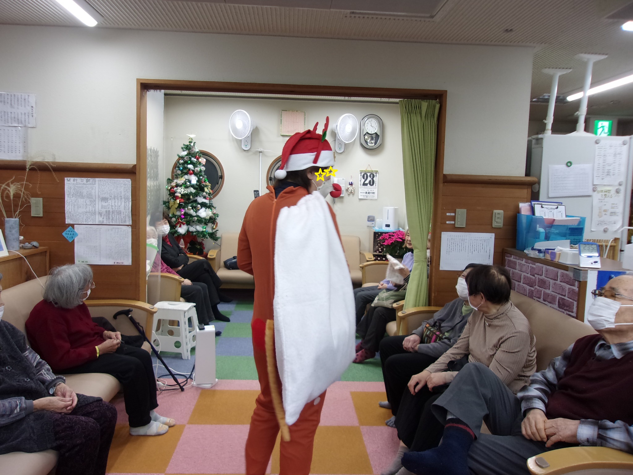 サンタさん、来ました? 2025/12/26 通所事業部 ツリーも運動します♪ ピンポン玉入れゲーム(^^♪ 白熱中 サンタ対トナカイ・・・対決の後は、クリスマスソングを仲良くみんなで歌いました ・・・お茶&ケーキを食べてから・・・ トナカイがプレゼントを⁉・・・