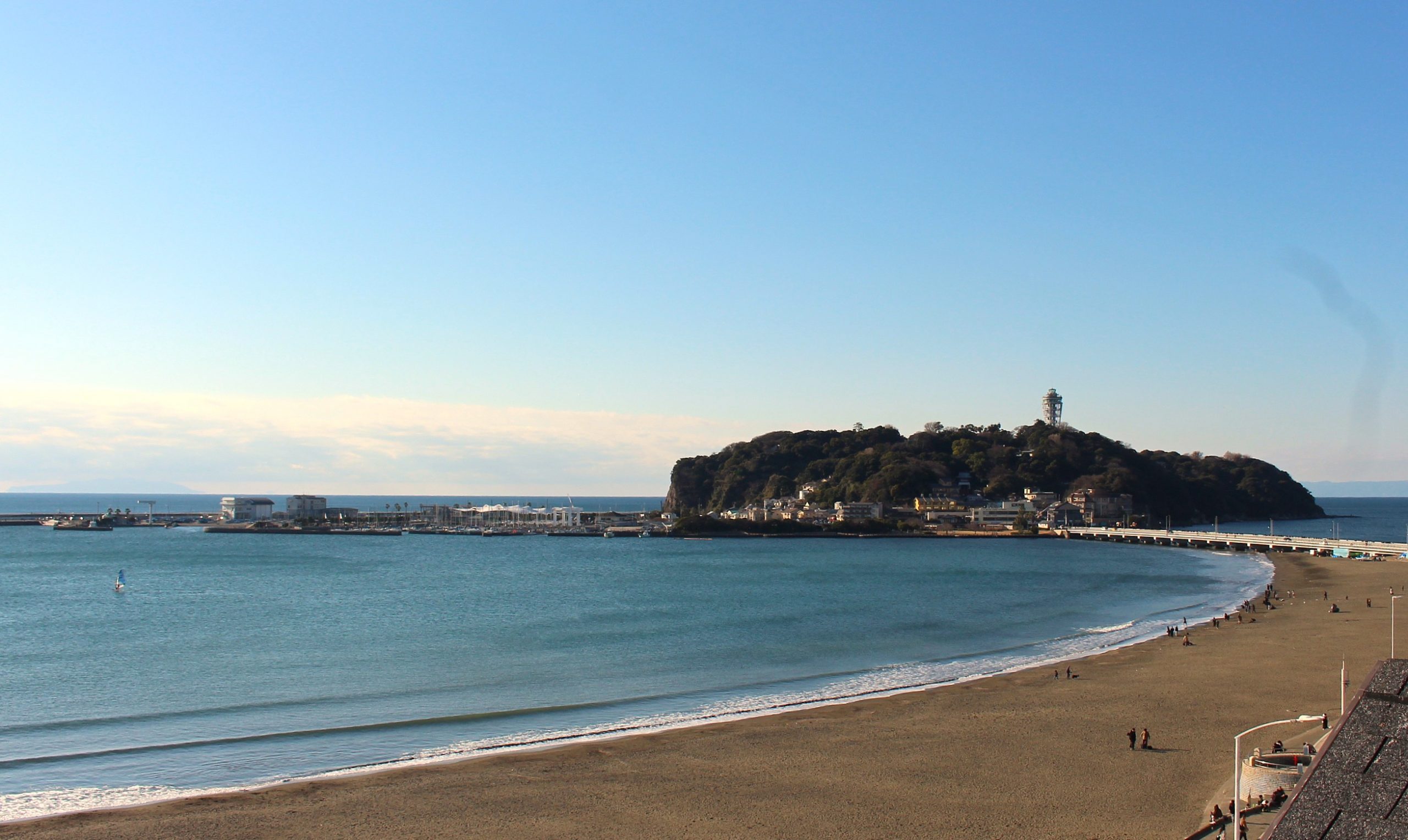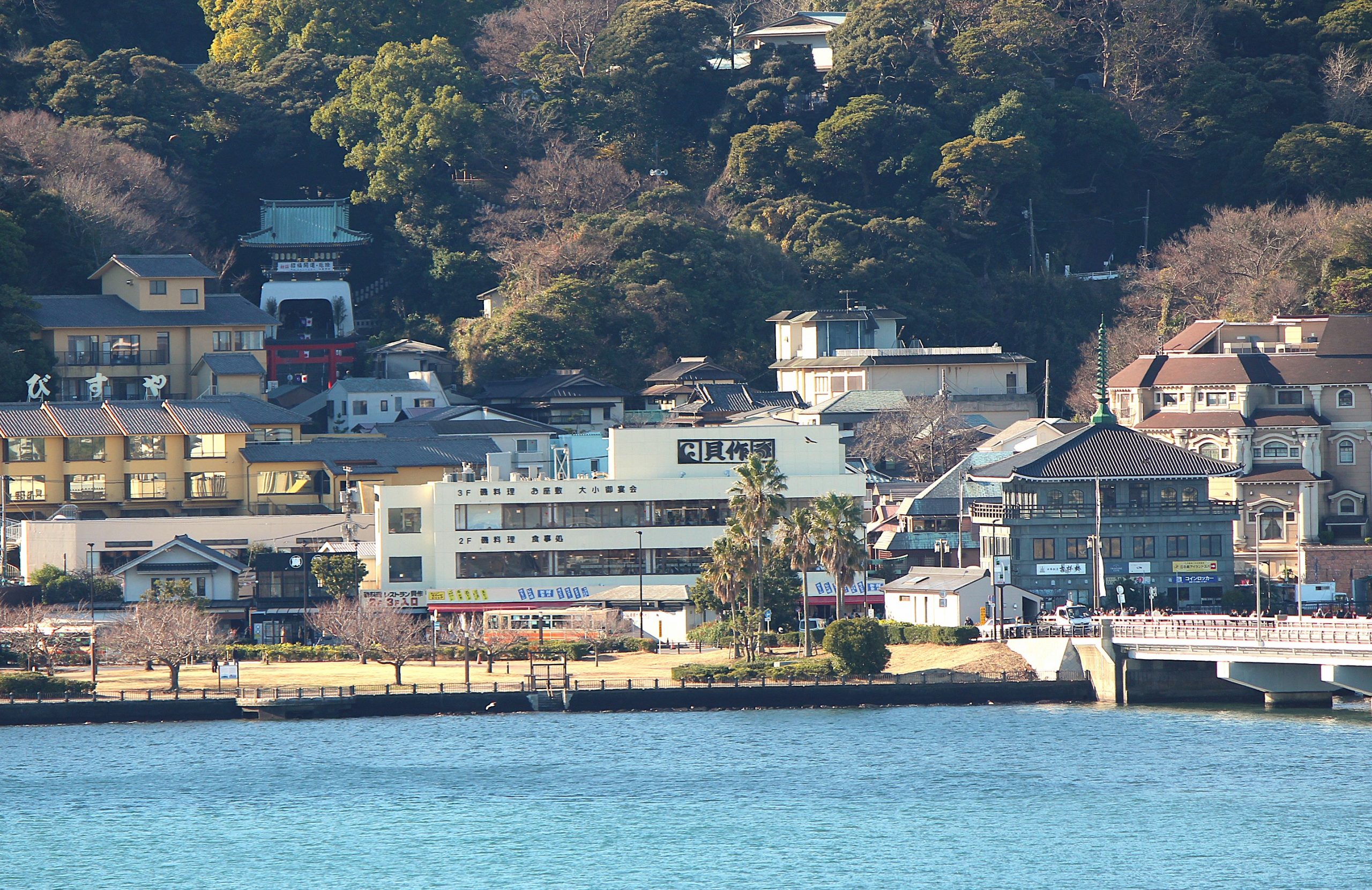 江の島神社の初詣客で橋は混雑💦